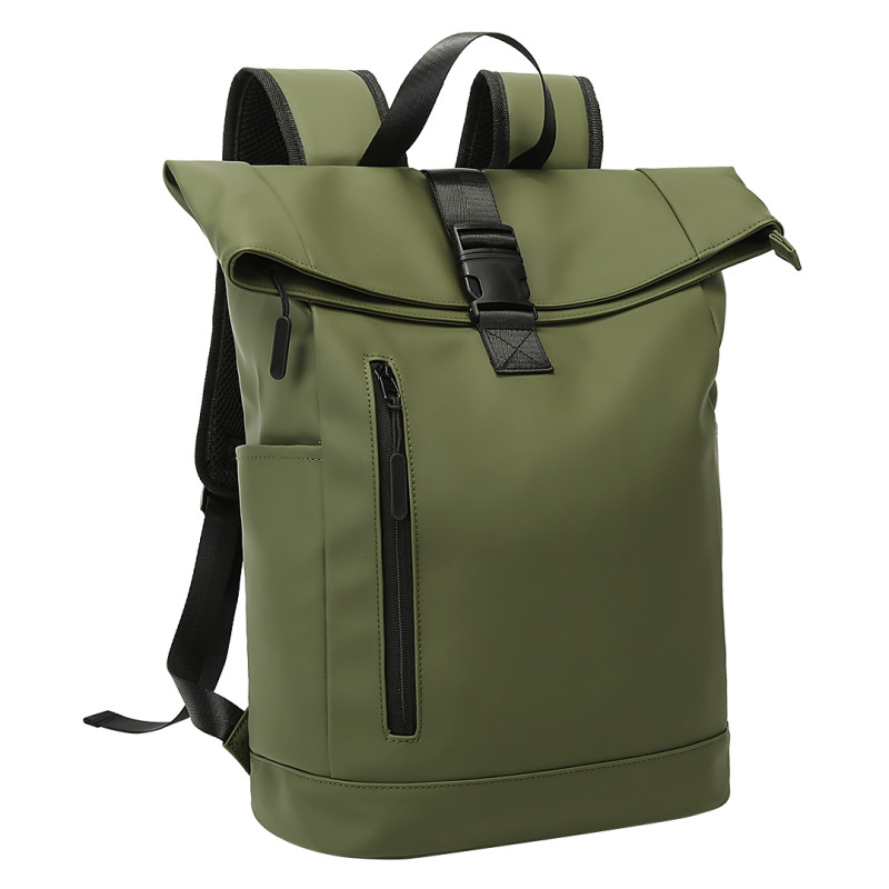 Backpack with one main compartment, front pocket with zipper, two side pockets