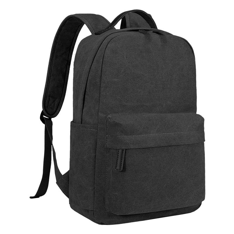 Backpack with one compartment and front zip pocket, two side pockets, lined back, 15" laptop compartment