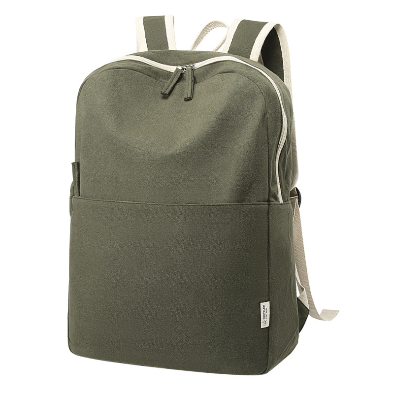 Recycled cotton backpack with one compartment and front zip pocket, 280 g/m2