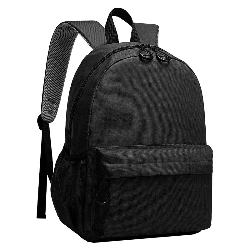 Backpack with one main compartment, front pocket with zipper, two side pockets, back side padded