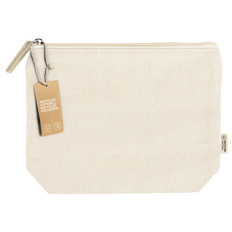 Cosmetic bag made of recycled material, puller made of self-fabric in tone with bottom, 320 g/m2