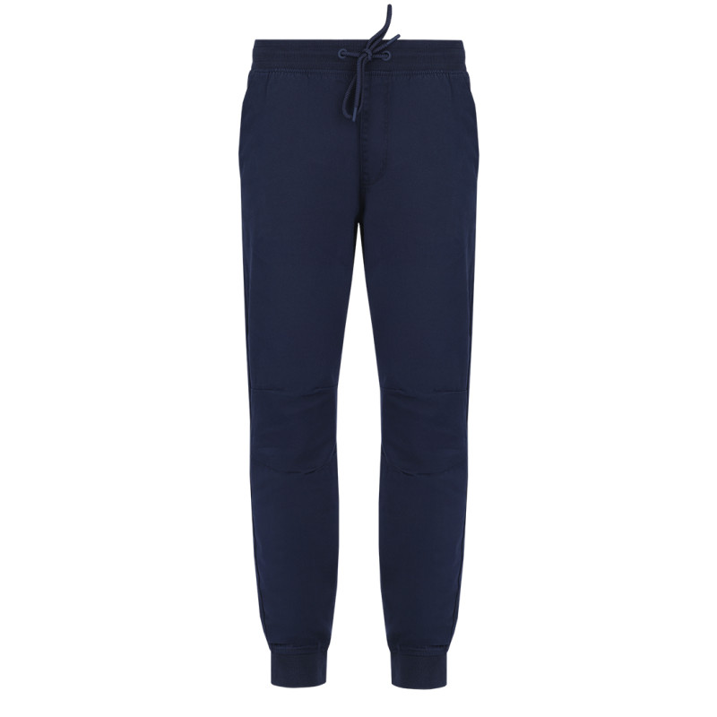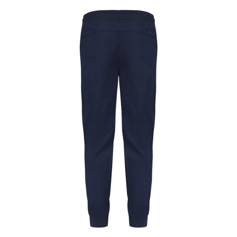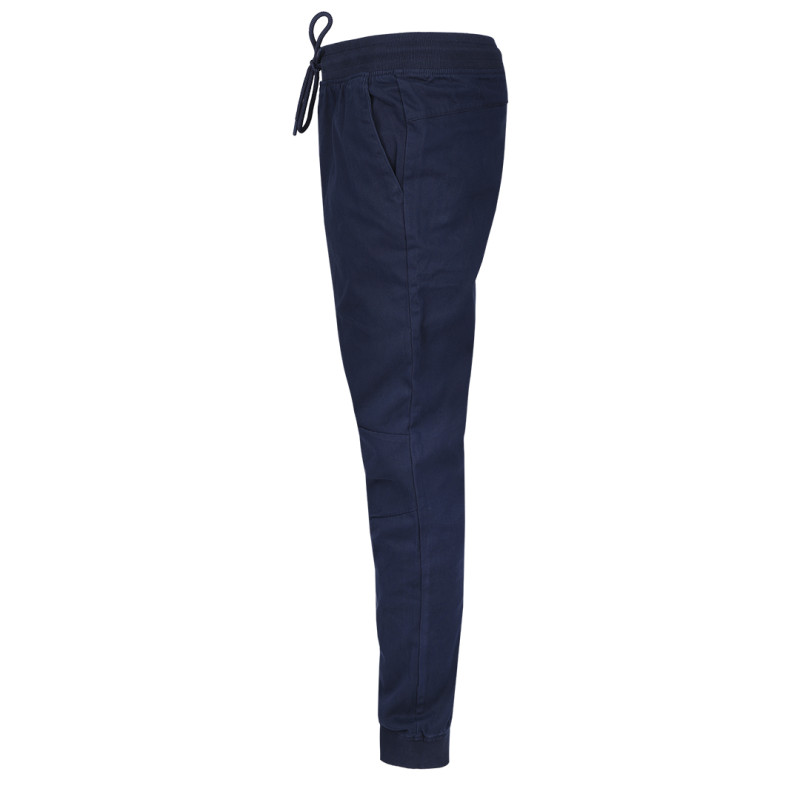 Pants with two front pockets, bottom cuff and elastic drawstrings for width adjustment