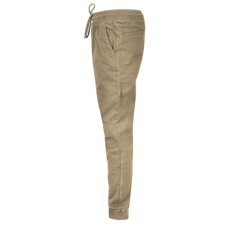 Pants with two front pockets, bottom cuff and elastic drawstrings for width adjustment