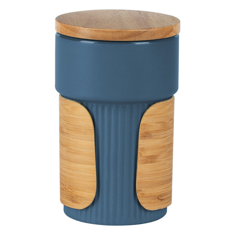Stoneware mug with bamboo lid and holder, 340 ml
