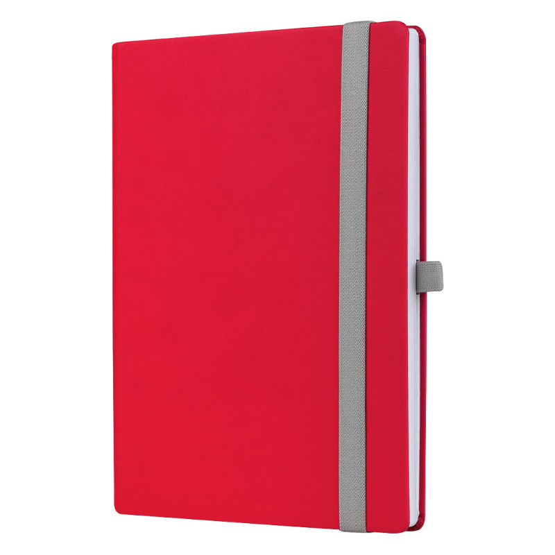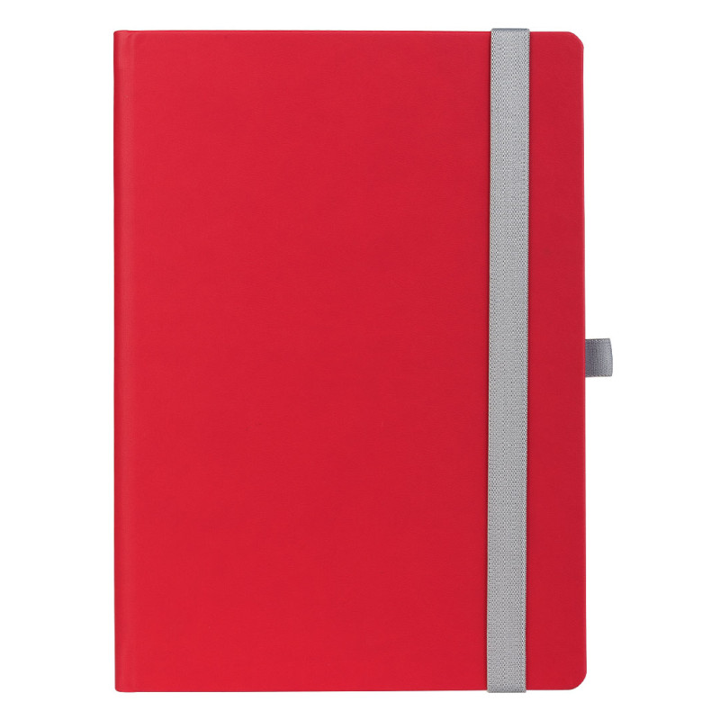 B5 notebook with rounded edges, elastic band, pen holder and pocket on the inside cover