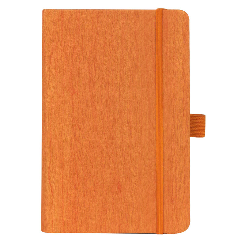 A6 notebook with rounded edges, elastic band and pen holder