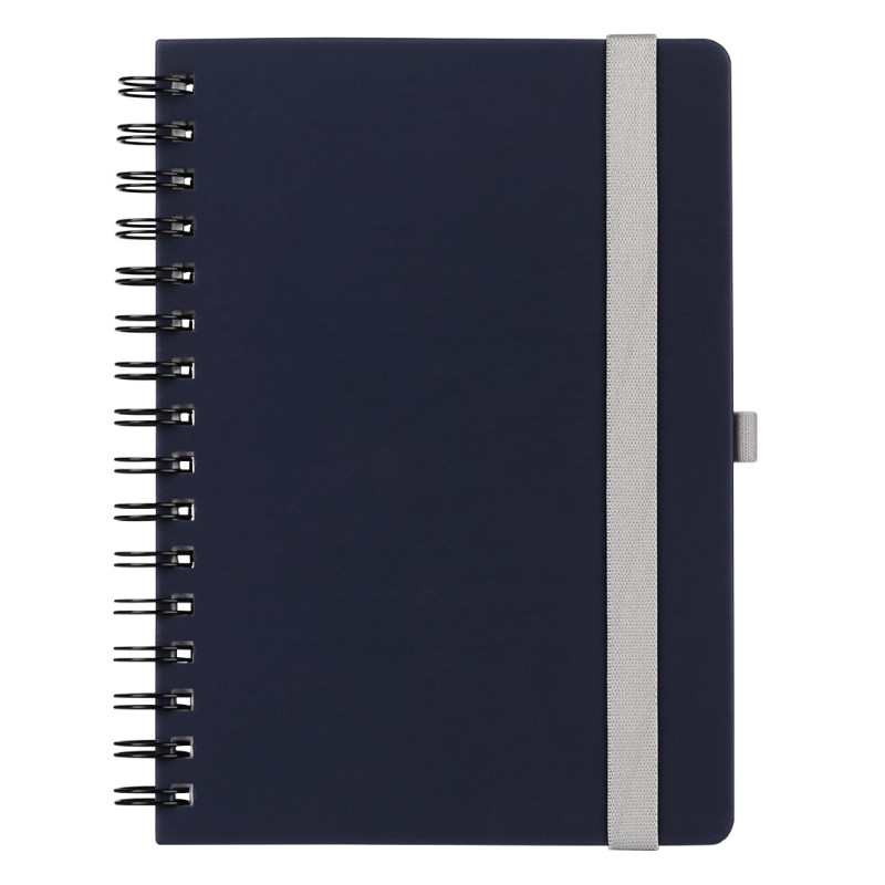 Wire-o notebook with rounded edges, elastic band and pen holder