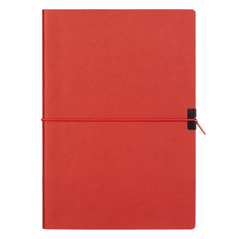 A5 notebook with rounded edges, flexible covers, elastic band, black endsheets, colored book block edge matching color with cover