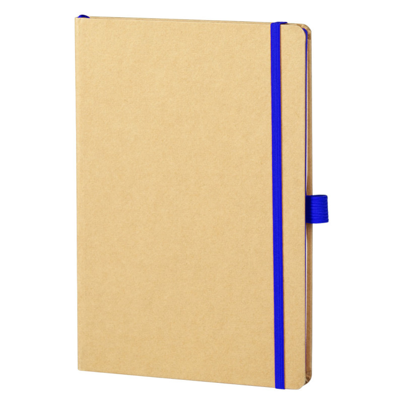 A5 notebook with rounded edges, colored book block edge matching color with elastic band, elastic band and pen loop