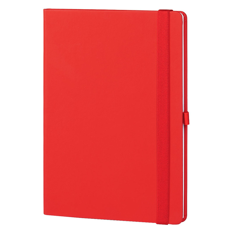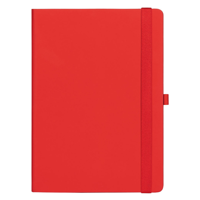 B5 notebook with rounded edges, elastic band, pen holder and pocket on the inside cover