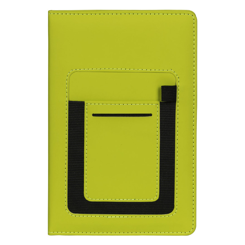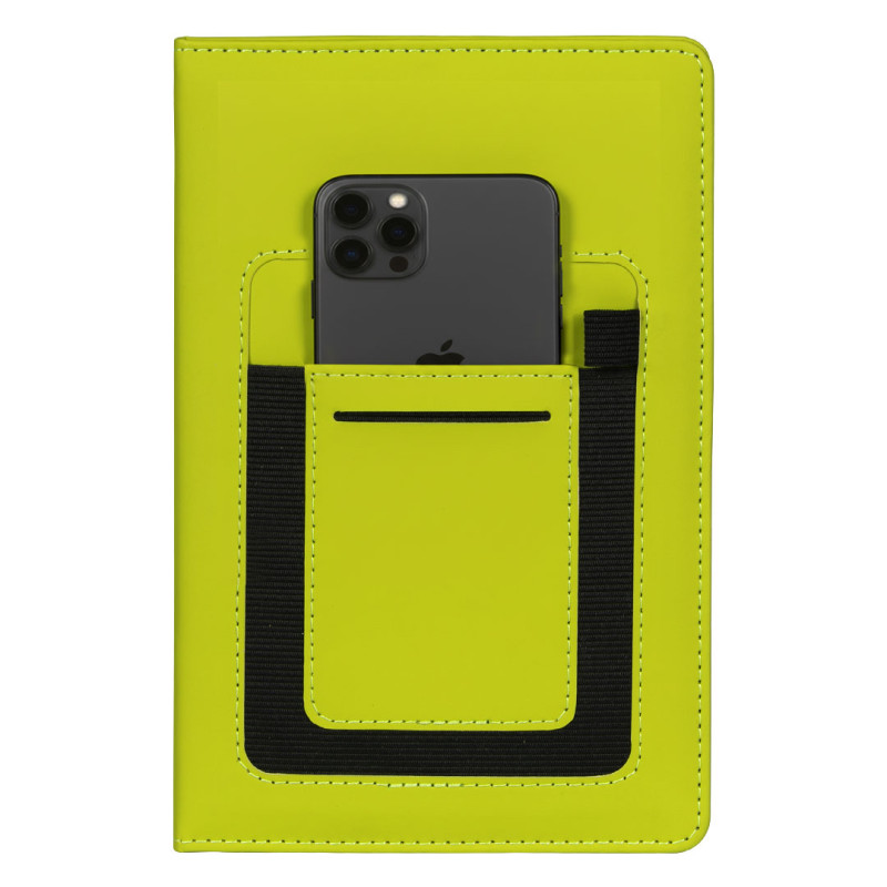A5 notebook with rounded edges, pen holder and pockets on the outside cover
