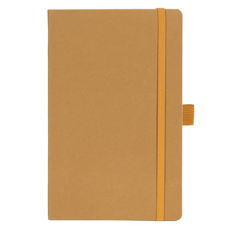 A5 notebook with rounded edges, elastic band, pen holder