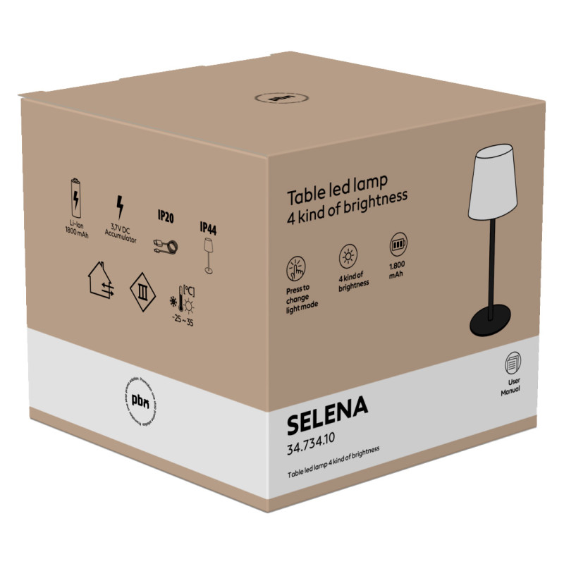 LED table lamp with touch function for switching on/off, 4 brightness levels: 25%, 50%, 75%, 100%. Adjustable height. It comes with a USB charging cable.