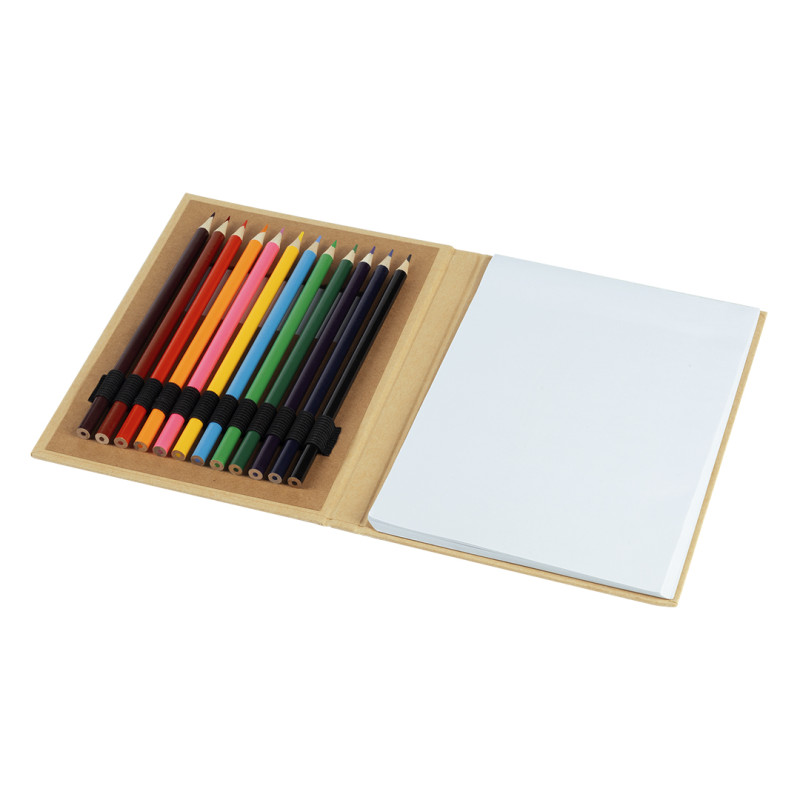 Coloring set with 12 colored pencils and 70 blank white sheets