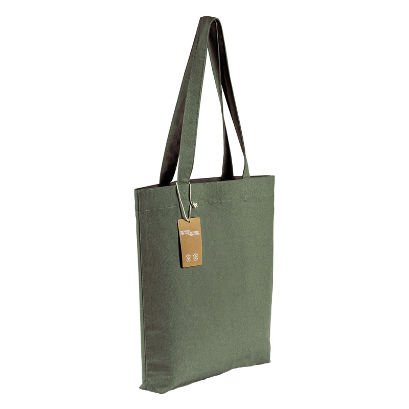 | Material | recycled cotton and recycled polyester Size: 36 x 37.5 x 6 cm Handles: 65 x 3 cm Packing: 100/5/1 |