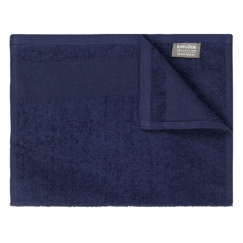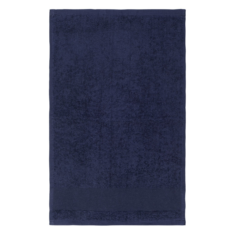 Towel, 380 g/m2, with 5 cm wide branding border and tone-to-tone cotton twill hanger