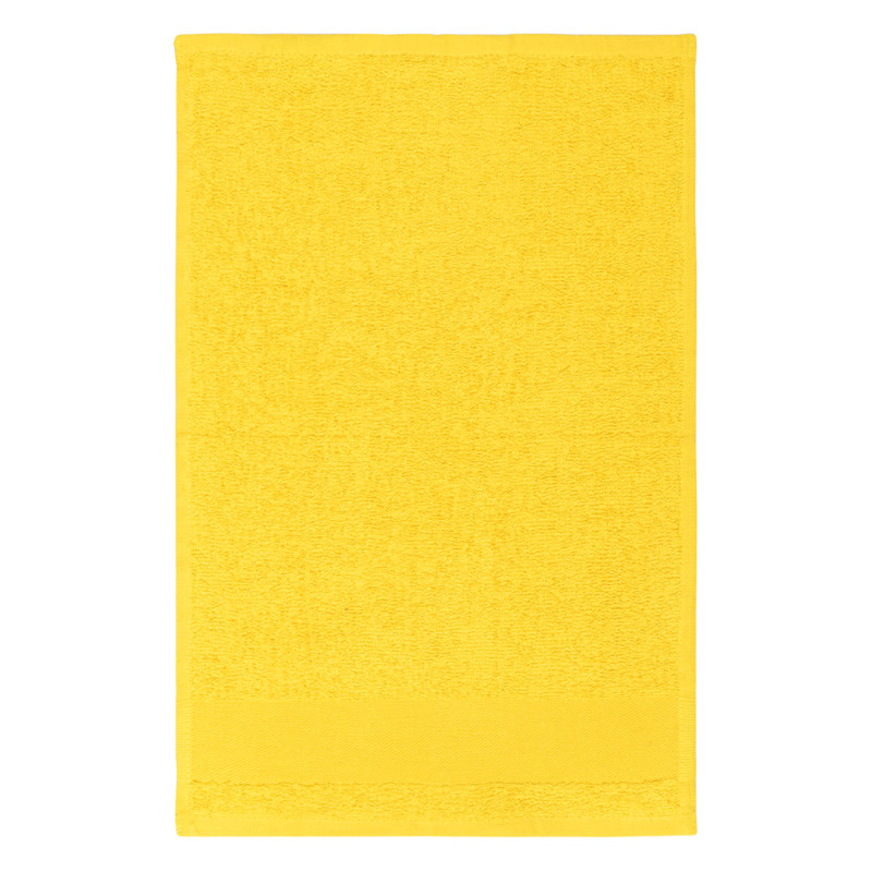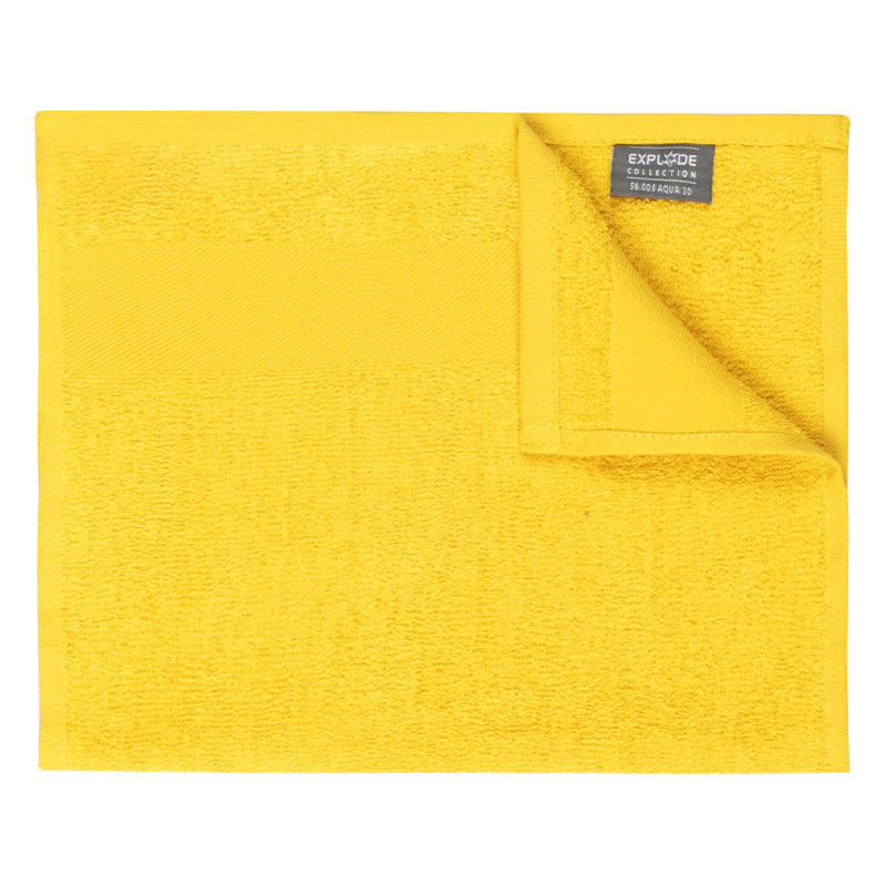 Towel, 380 g/m2, with 5 cm wide branding border and tone-to-tone cotton twill hanger