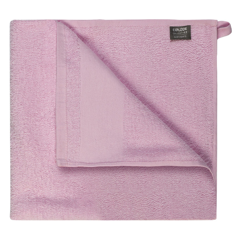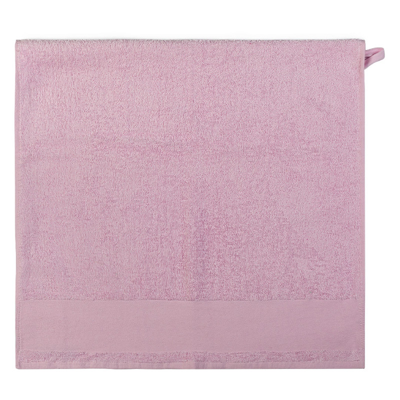 Towel, 380 g/m2, with 8 cm wide branding border and tone-to-tone cotton twill hanger
