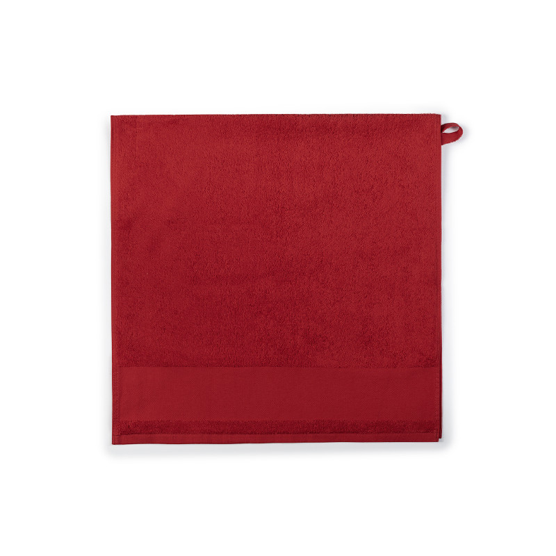 Towel, 480 g/m2, with 8 cm wide branding border and tone-to-tone cotton twill hanger