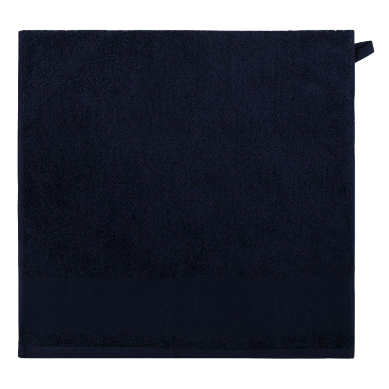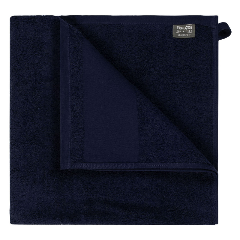 Towel, 500 g/m2, with 8 cm wide branding border and tone-to-tone cotton twill hanger