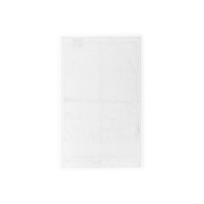 Towel, 380 g/m2, with 8 cm wide branding border for sublimation and tone-to-tone cotton twill hanger