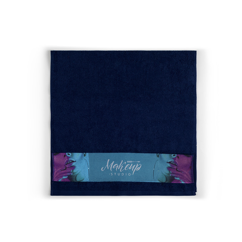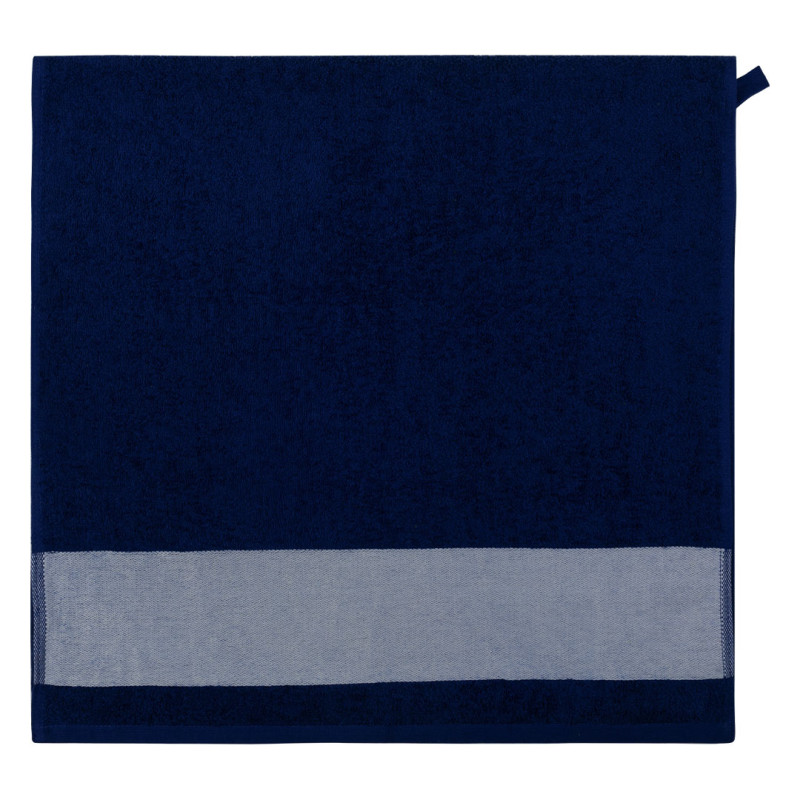 Towel, 380 g/m2, with 10 cm wide branding border for sublimation and tone-to-tone cotton twill hanger