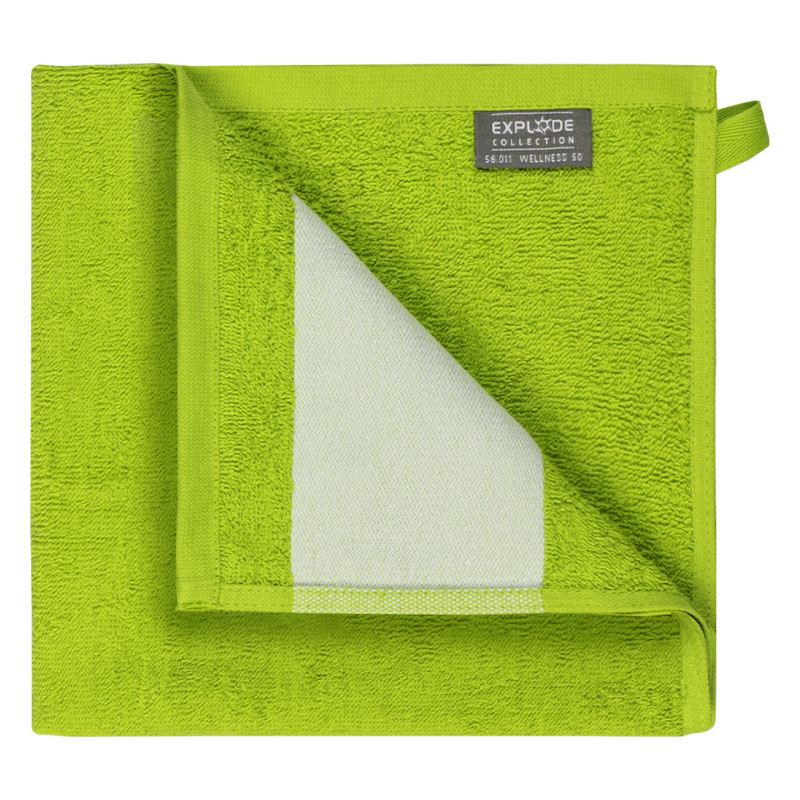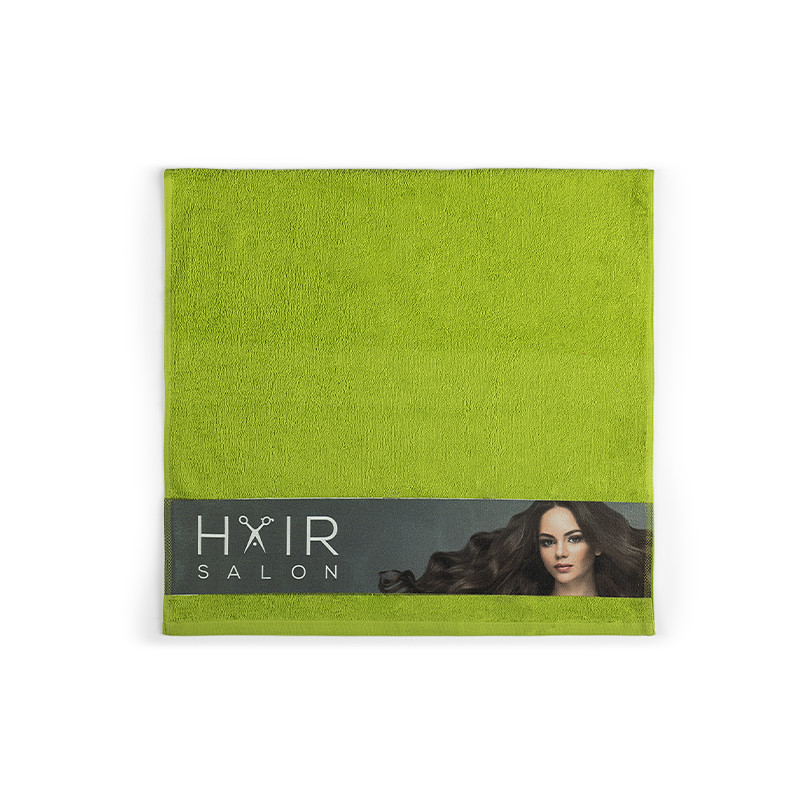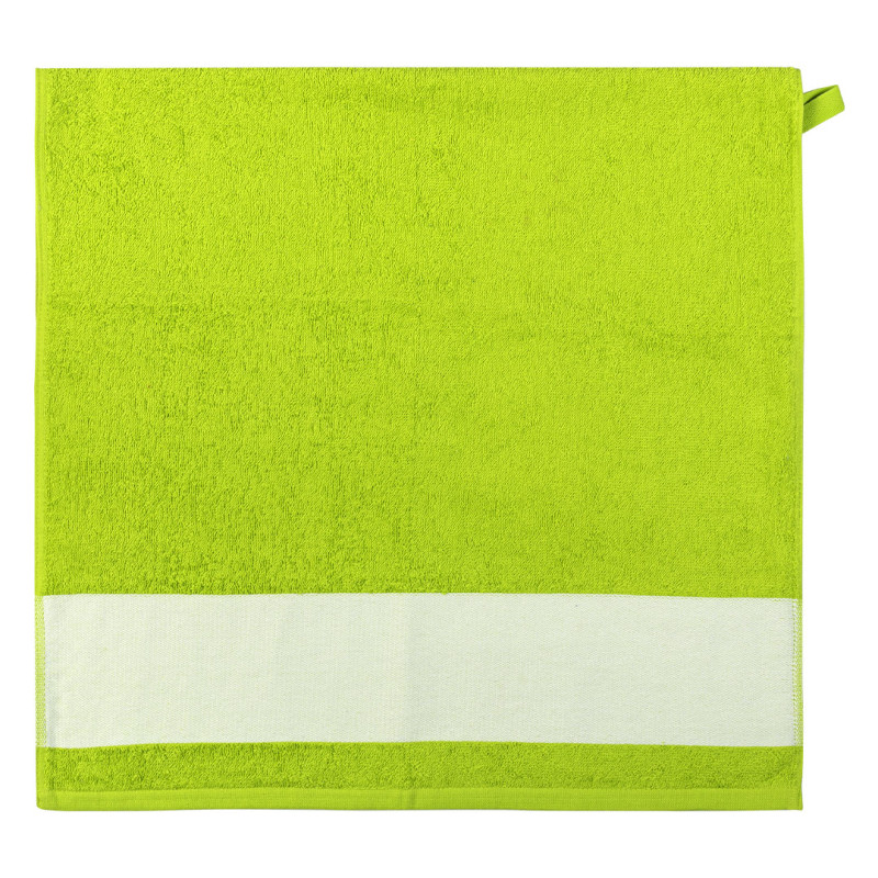Towel, 380 g/m2, with 10 cm wide branding border for sublimation and tone-to-tone cotton twill hanger