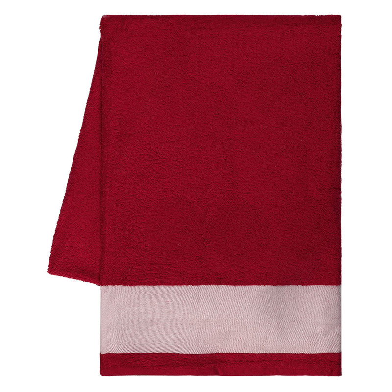 Towel, 500g/m2, with 10 cm wide branding border for sublimation and tone-to-tone cotton twill hanger