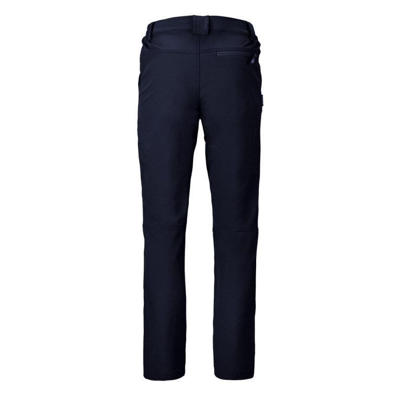 Multifunctional pants made of 4-way stretch fabric, 190 g/m², with an extended waistband at the back. Two front pockets, two zippered pockets, triple stitches for reinforcement.