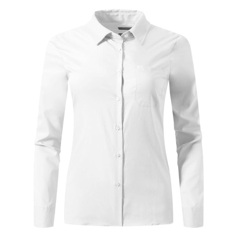 Women's shirt, classic adjusted fit, two darts on the front, two darts on the back, pocket on the left side of chest, tone-to-tone seven buttons placket, two buttons on cuffs, spare button, easy care finish
