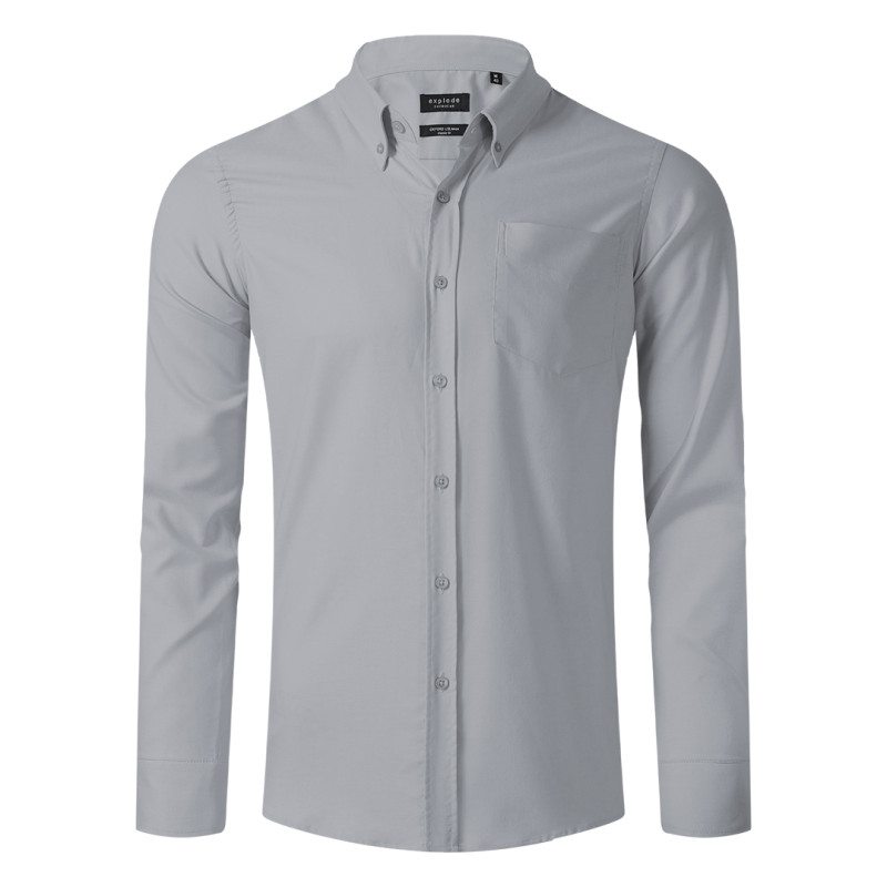 Men's shirt, slim fit, pocket on the left side of chest, tone-to-tone seven buttons placket, three buttons on cuffs, two buttons on collar, spare buttons, easy care finish