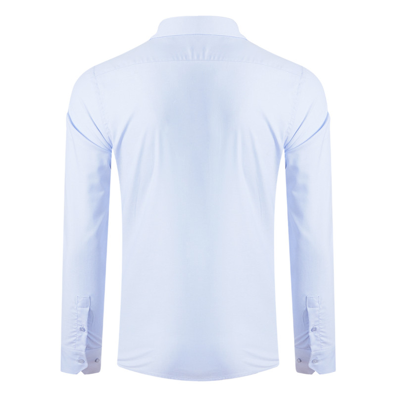 Men's shirt, slim fit, pocket on the left side of chest, tone-to-tone seven buttons placket, three buttons on cuffs, two buttons on collar, spare buttons, easy care finish