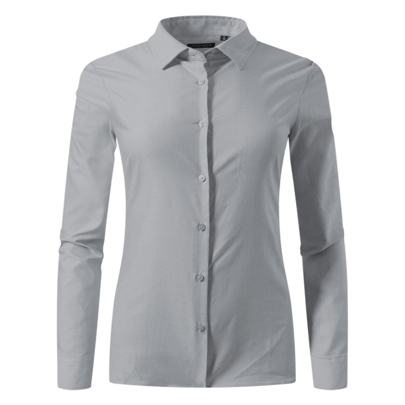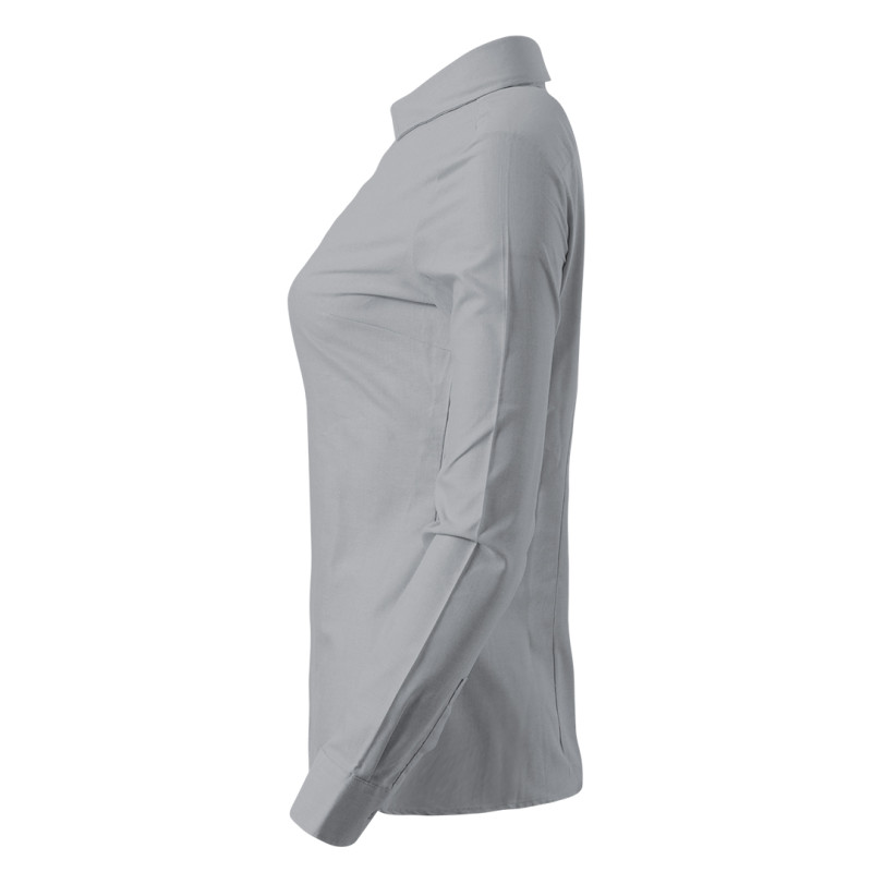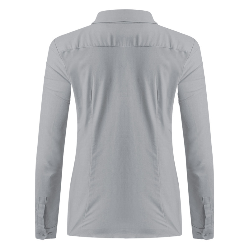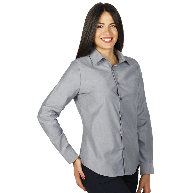 Women's shirt, classic adjusted fit, two darts on the front, two darts on the back, tone-to-tone seven buttons placket, two buttons on cuffs, spare button, easy care finish