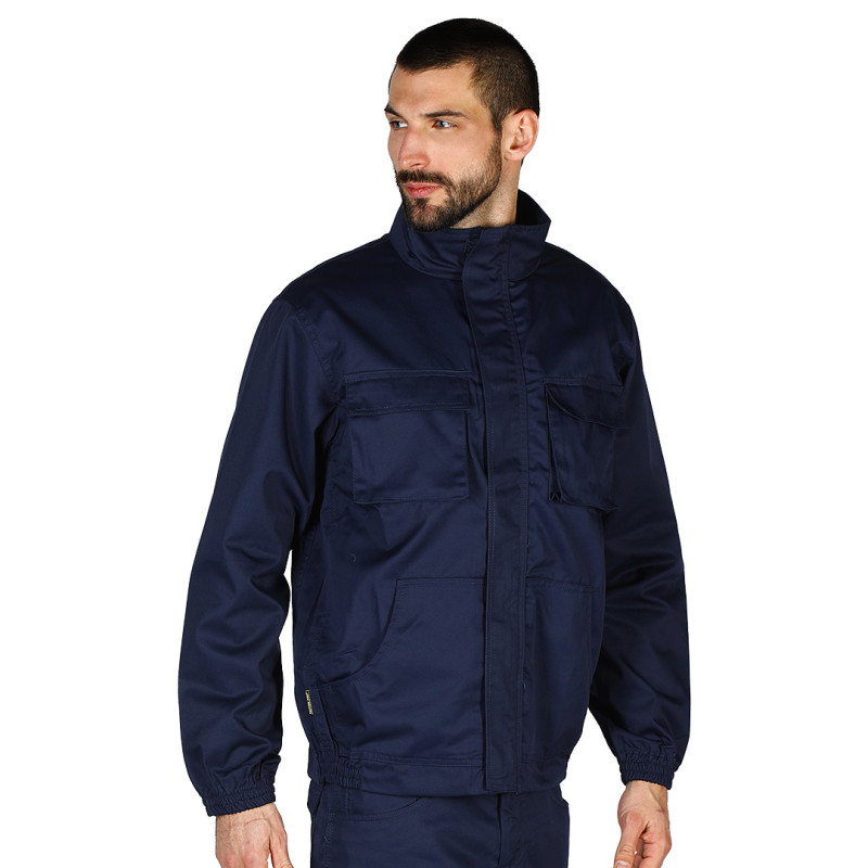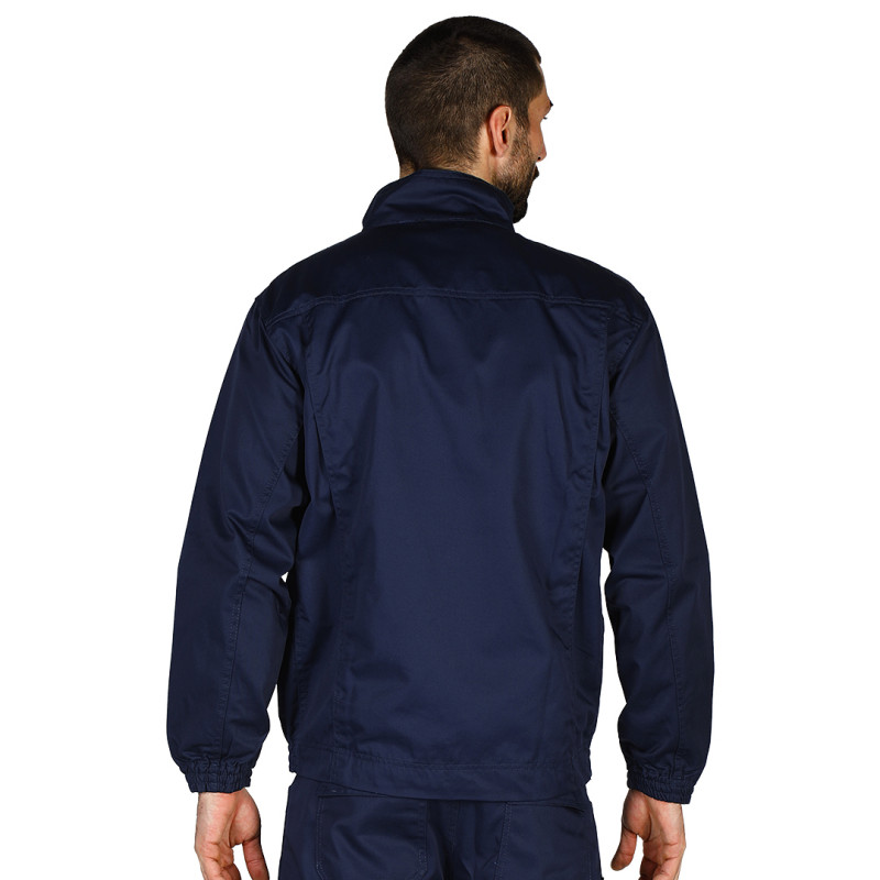 Jacket, 240g/m2, twill, high collar, flap closed with velcro tapes, two chest pockets with flaps, two side pockets, two darts on the back, elasticated cuffs and bottom for better fitting and comfort, identity label inside