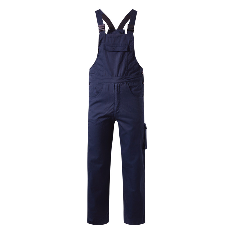 Bib pants, 240 g/m2, twill, comfortable fit, adjustable straps with plastic buckles, plaster with one pocket, two front pockets, two back pockets and two side pockets with flaps, hammer loop, elastic band and buttons inside waist for comfort, identity label inside, three needle stitching and bartaks for extra strength