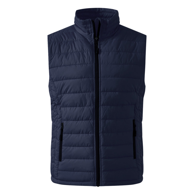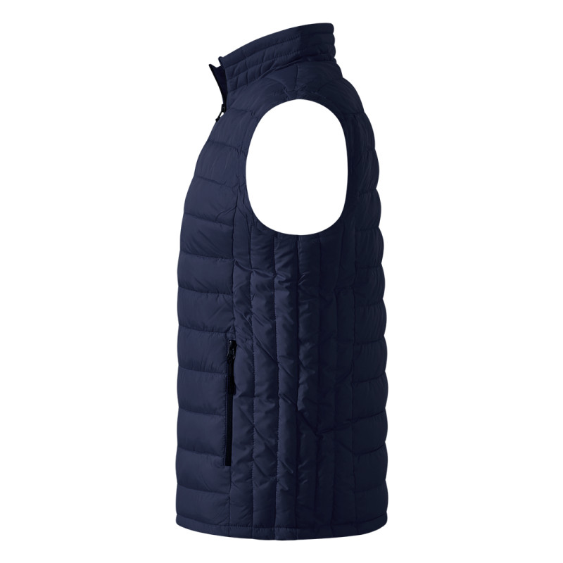 Bodywarmer, high collar, two front and inner zippered pocket, with invisible zipper on the inside back bottom for easier printing access