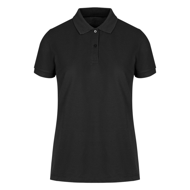Women's polo shirt, 180 g/m2, adjusted fit, side seam, double stitching at bottom, with cuffs, two tone-to-tone buttons, spare button, reinforcement tape at neckline, and topstitch at shoulder line