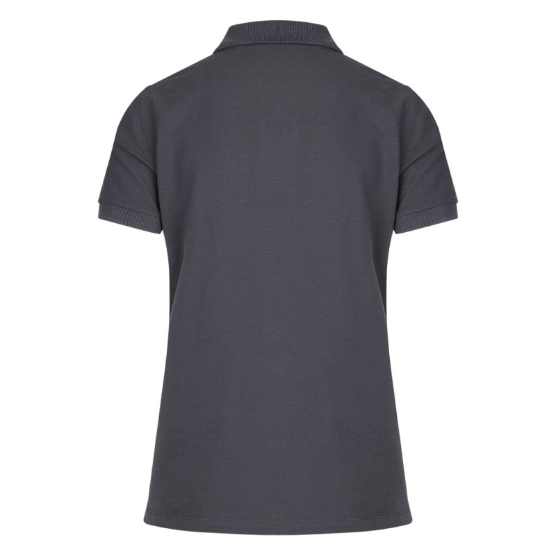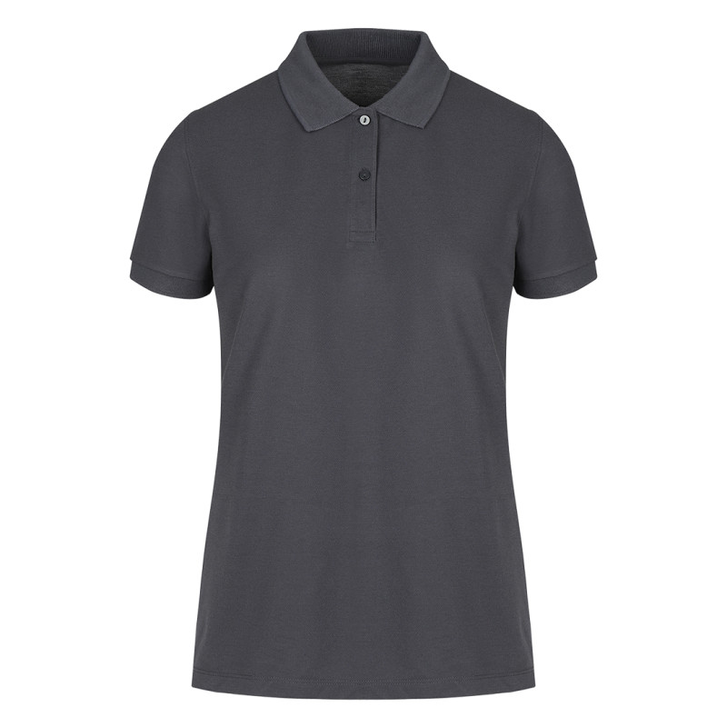 Women's polo shirt, 180 g/m2, adjusted fit, side seam, double stitching at bottom, with cuffs, two tone-to-tone buttons, spare button, reinforcement tape at neckline, and topstitch at shoulder line