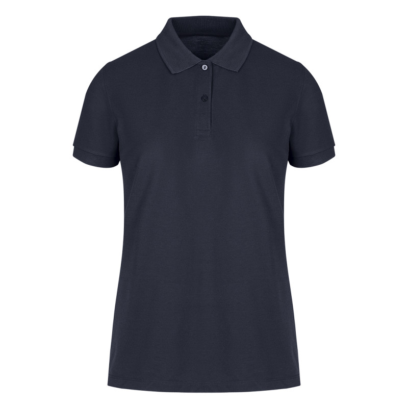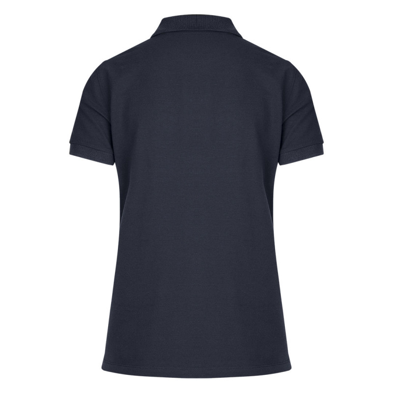 Women's polo shirt, 180 g/m2, adjusted fit, side seam, double stitching at bottom, with cuffs, two tone-to-tone buttons, spare button, reinforcement tape at neckline, and topstitch at shoulder line
