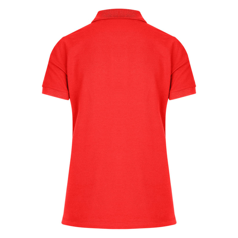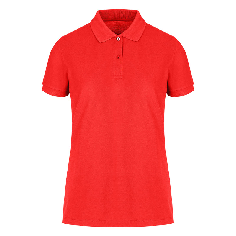 Women's polo shirt, 180 g/m2, adjusted fit, side seam, double stitching at bottom, with cuffs, two tone-to-tone buttons, spare button, reinforcement tape at neckline, and topstitch at shoulder line