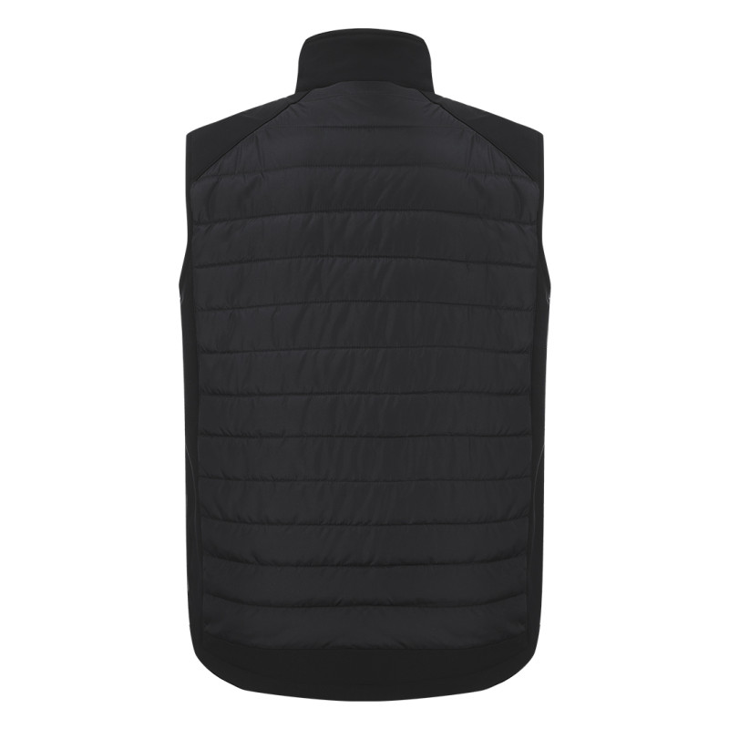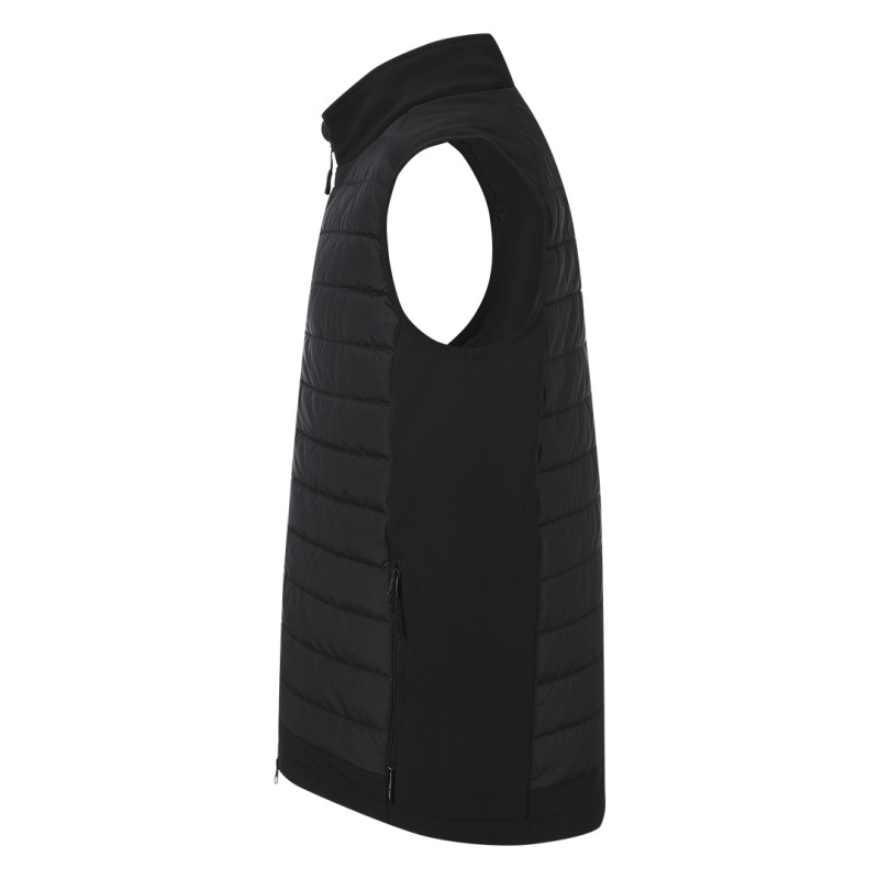 Bodywarmer with two front pockets, one chest pocket with zipper and zipper on the inside back for easier printing access