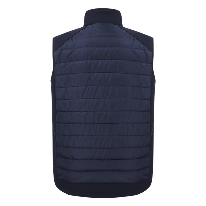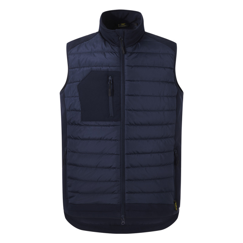 Bodywarmer with two front pockets, one chest pocket with zipper and zipper on the inside back for easier printing access