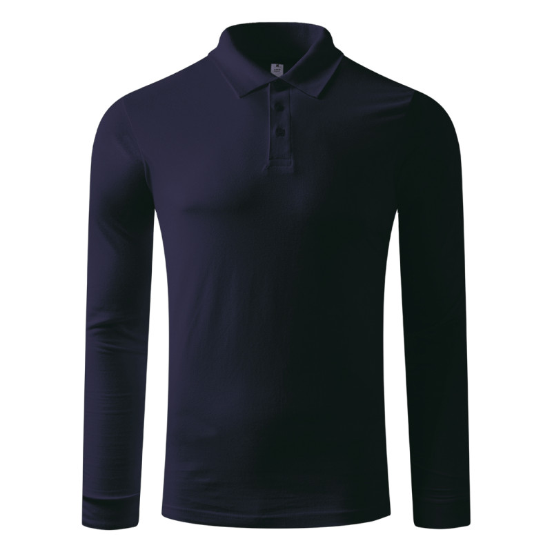 Long sleeve polo shirt, 200g/m2, side seam, elasticated cuffs, double stitching at bottom, three tone-to-tone buttons, spare button, reinforcement tape at neck line