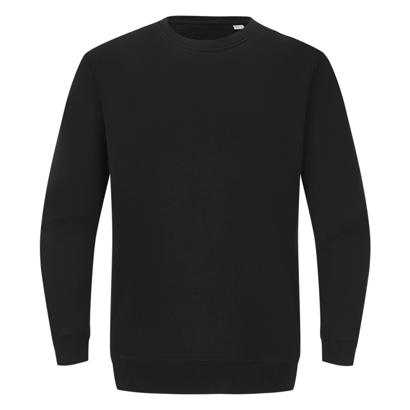 Organic cotton sweatshirt, elasticated rib cuffs, collar and bottom, reinforcement tape at neckline, double stitching at collar, shoulders, sleeves and hem