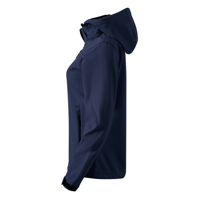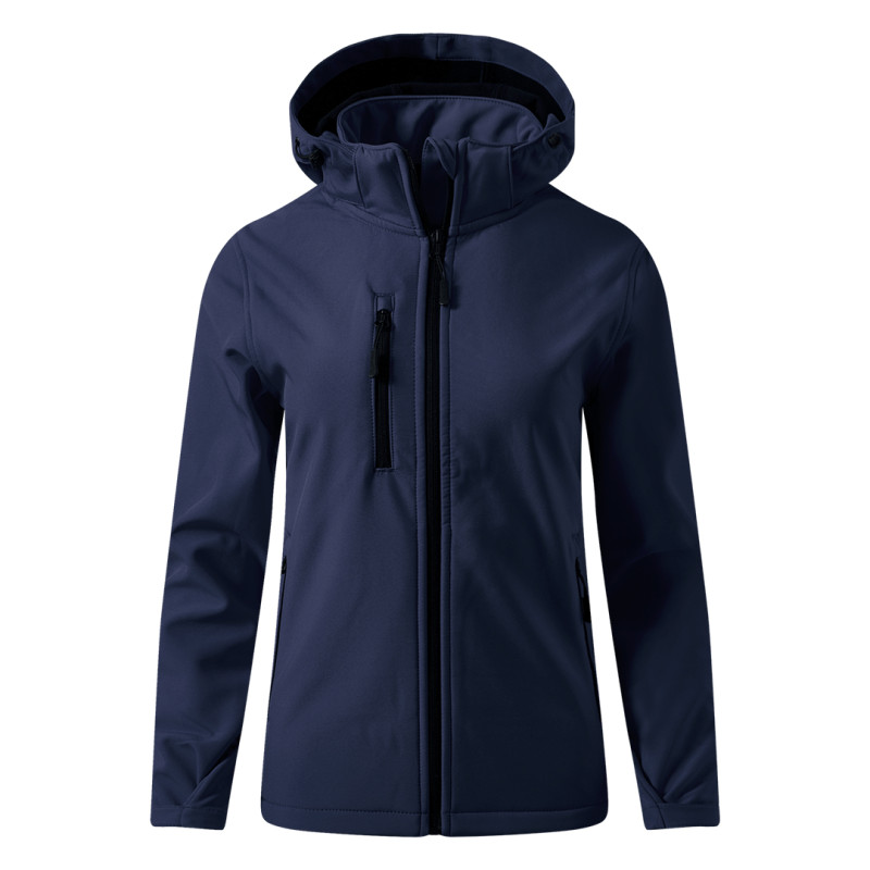 Women's jacket, adjusted fit, high collar, elasticated adjustable drawstrings with stoppers in the hood, velcro sleeve adjustments, two front and chest zippered pocket
