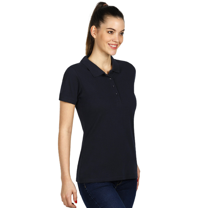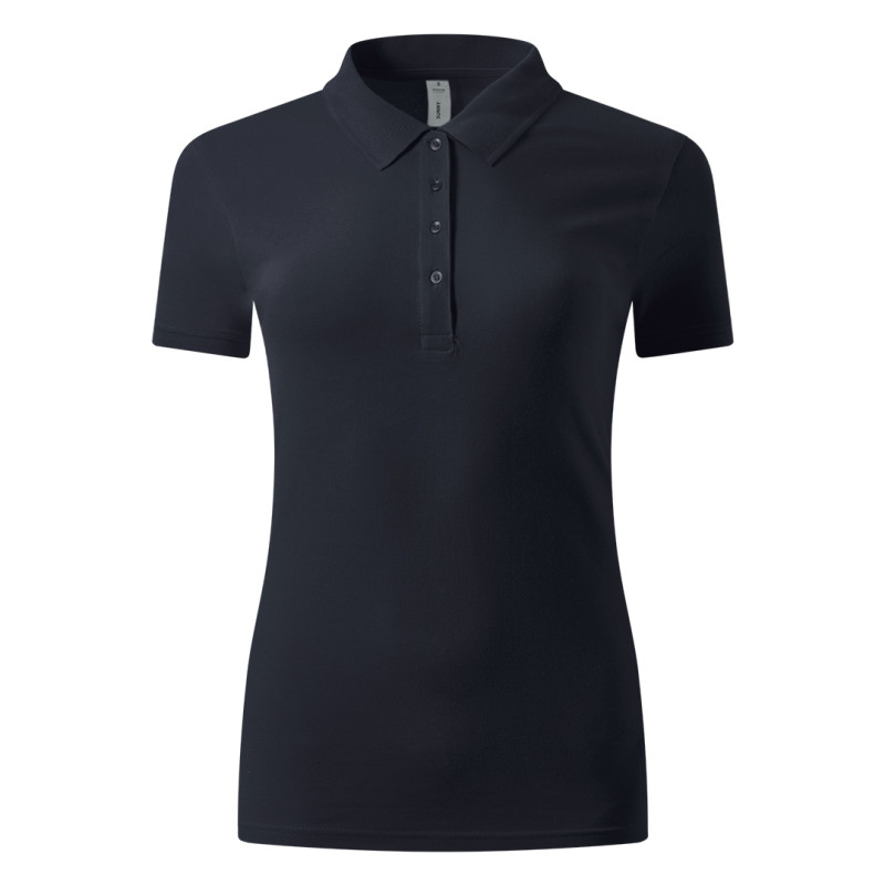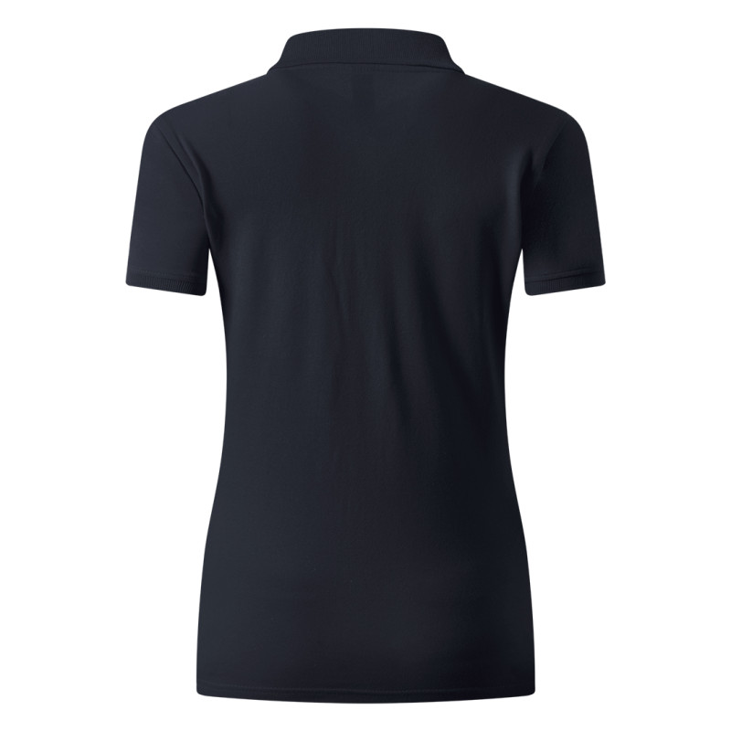 Women's polo shirt, 180 g/m2, adjusted fit, side seam, double stitching at bottom, with cuffs, four tone-to-tone buttons, spare button, reinforcement tape at neckline and topstitch at shoulder line