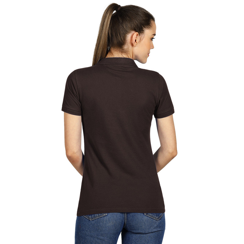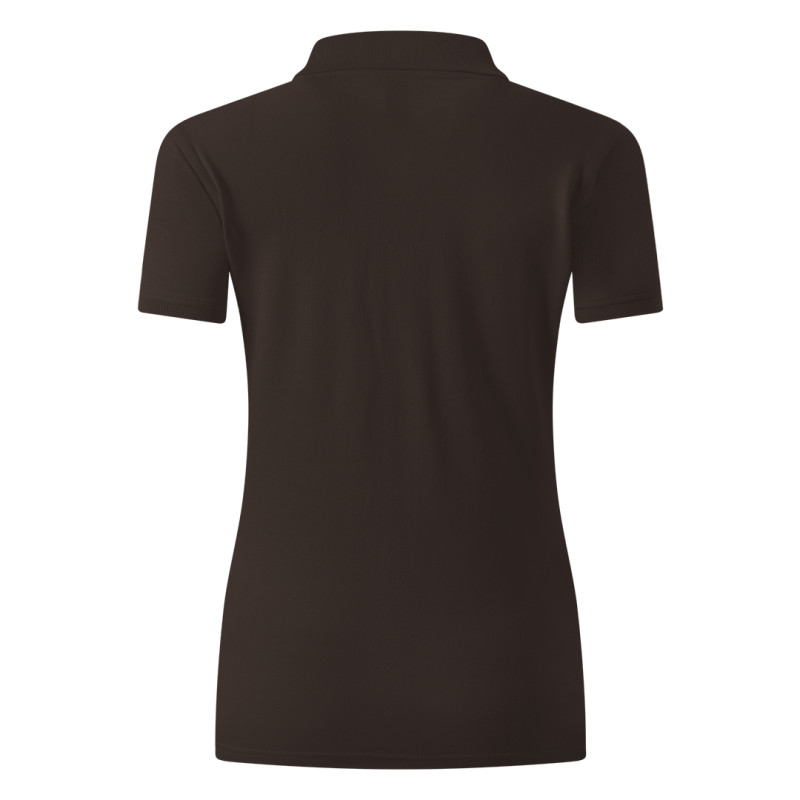 Women's polo shirt, 180 g/m2, adjusted fit, side seam, double stitching at bottom, with cuffs, four tone-to-tone buttons, spare button, reinforcement tape at neckline and topstitch at shoulder line