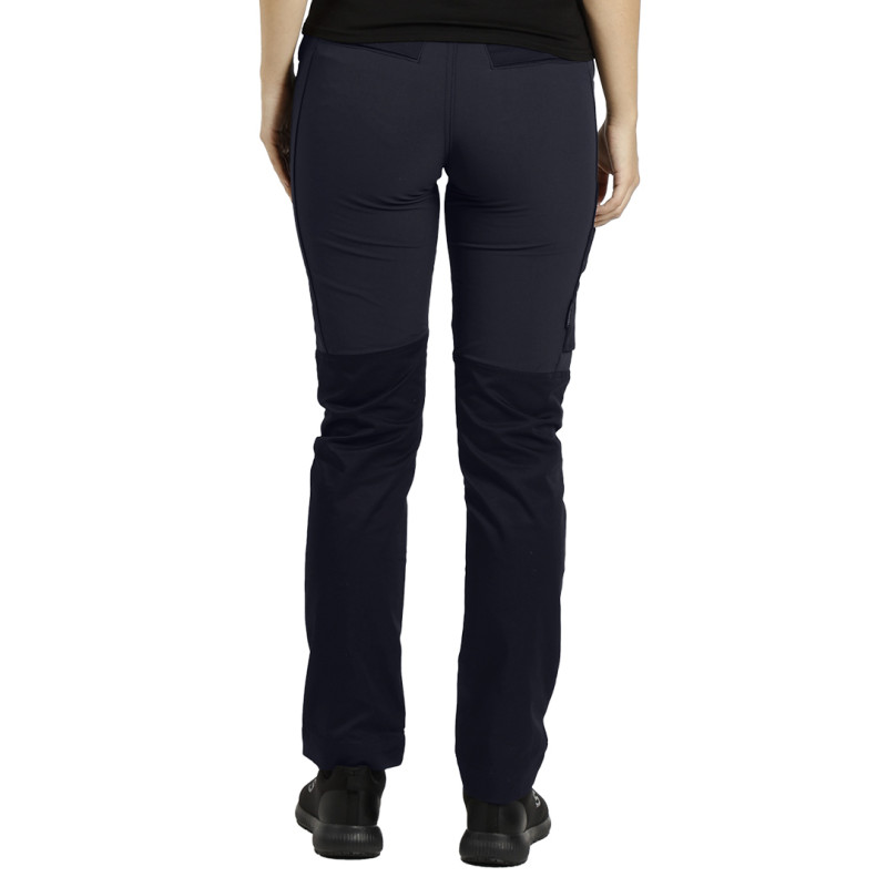 Stretch workwear pants made of 210 g/m2 twill, stretch fabric in the back and knee area, elastic waist band for extra comfort, two front pockets, two back pockets and a multipurpose side pocket, triple stitching reinforcement