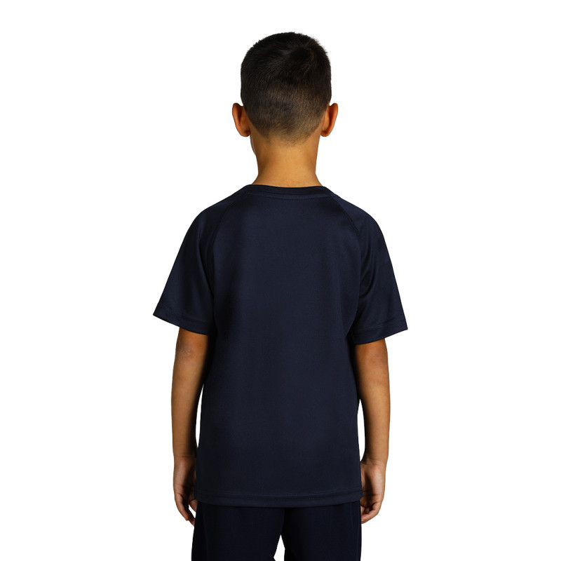 Kid's sports T-shirt, 130 g/m2, comfort fit, raglan sleeves, side seem, self-fabric collar, bird eye mesh with breathable, wicking and quick dry function, tagless