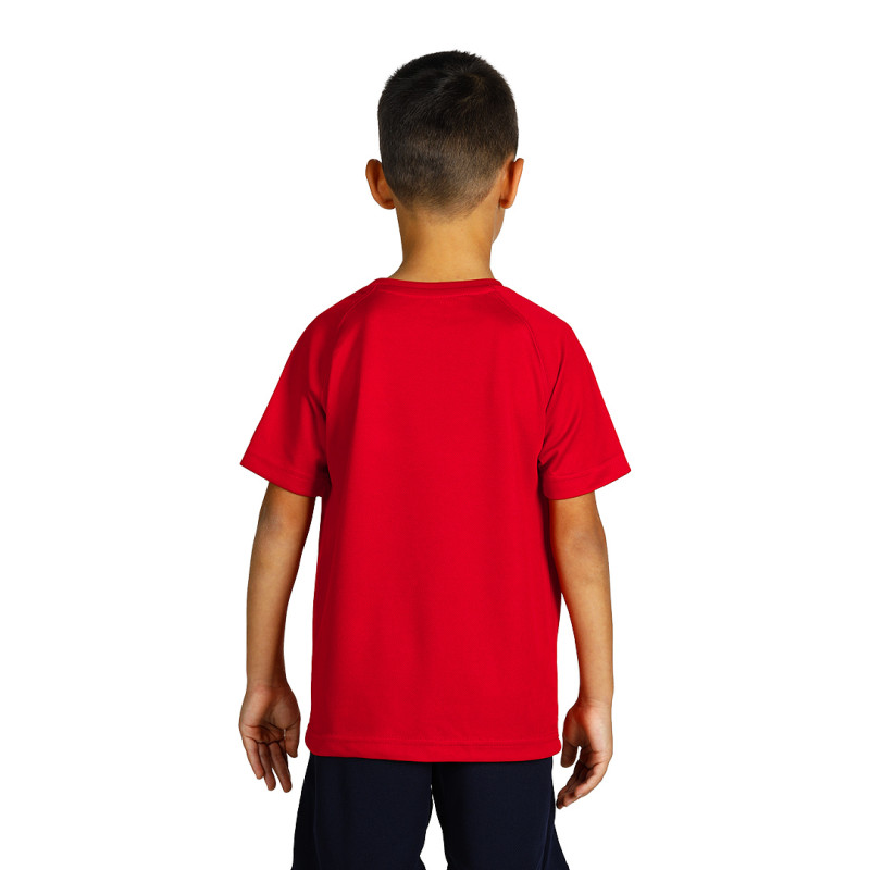 Kid's sports T-shirt, 130 g/m2, comfort fit, raglan sleeves, side seem, self-fabric collar, bird eye mesh with breathable, wicking and quick dry function, tagless